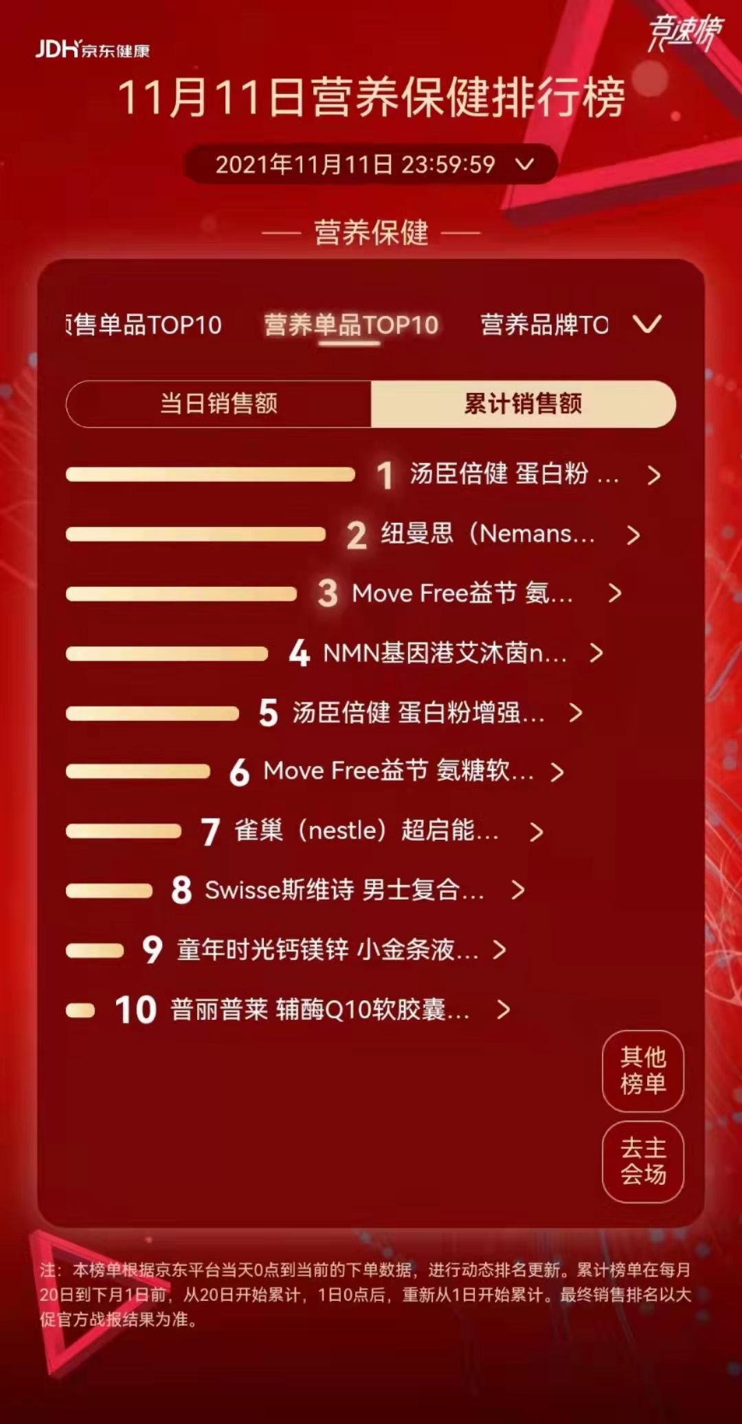 Winding up the 2021 Double Eleven shopping spree, all platforms disclosed sales results in all sectors, among which, healthcare consumption was conspicuous in particular. From 20:00 October 20 to 24:00 November 11, Vitamin & Dietary Supplements (VDS) industry leader BYHEALTH achieved a 38.3% surge in the whole network sales (CNY 600 million). With sales exceeding 100 million yuan both at Tmall and JD.com, the brand topped sales rankings for diverse categories and outperformed peers in JD and Tmall brand sales rankings for 3 consecutive years.