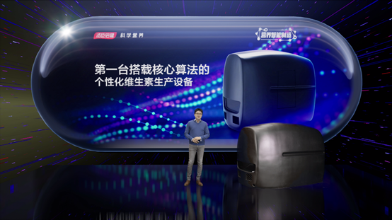个性化定制维生素概念产品,是基于饮食及生活方式分析、表观型分析、基因型分析三个维度的综合型检测评估;在“千人千面”的多维度精准分析基础上,综合考虑了检测的便捷性和动态性需求,以干血斑检测技术对个体进行9种维生素和8种微量元素的个性化需求分析,使用在线工具提供检测报告、生成个人营养画像,并快速生产出专属的个性化定制维生素,首次形成了“检测-评估-干预-监测”的完整闭环,推动了精准营养的应用转化。